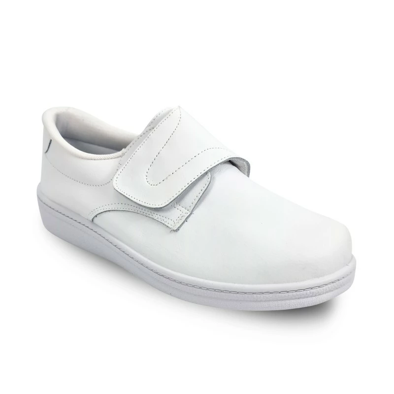 Zuecos Sanitarios Hombre Piel Cierre Velcro Anatómicos 290 Blanco, de Percla