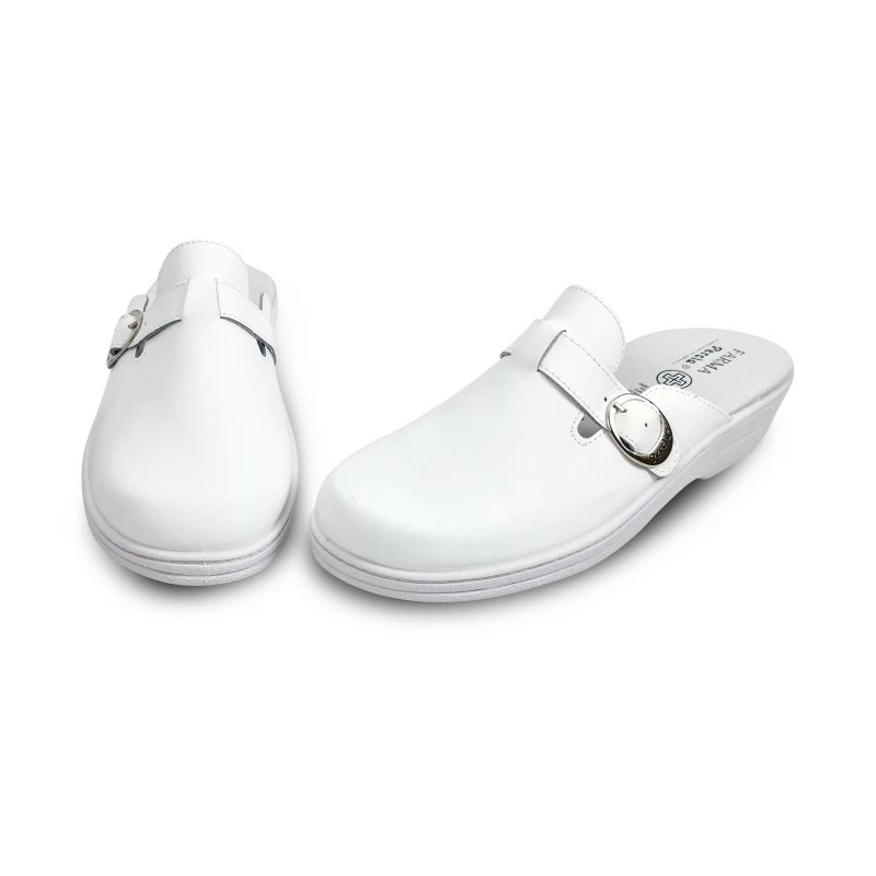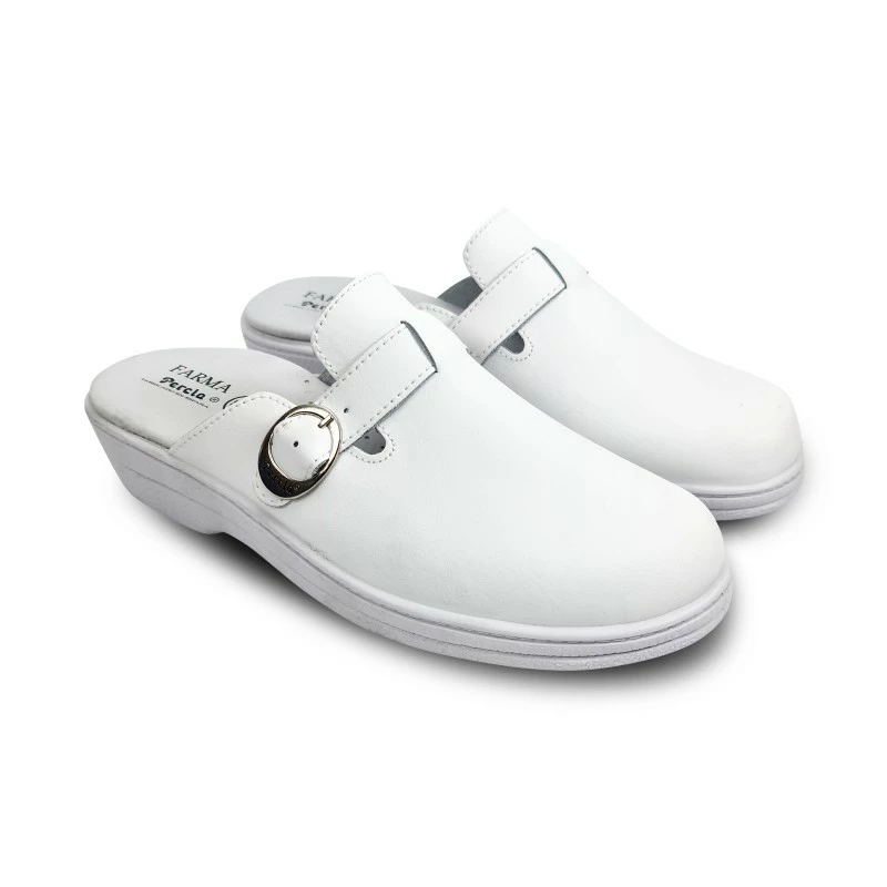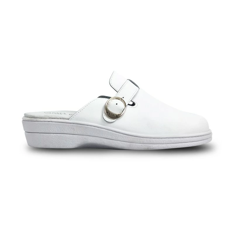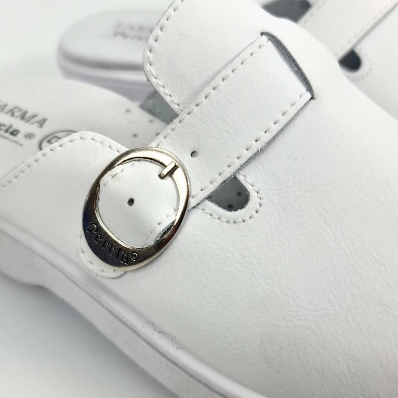 Zuecos Sanitarios Mujer Piel Destalonados Hebilla 796 Blanco, de Percla